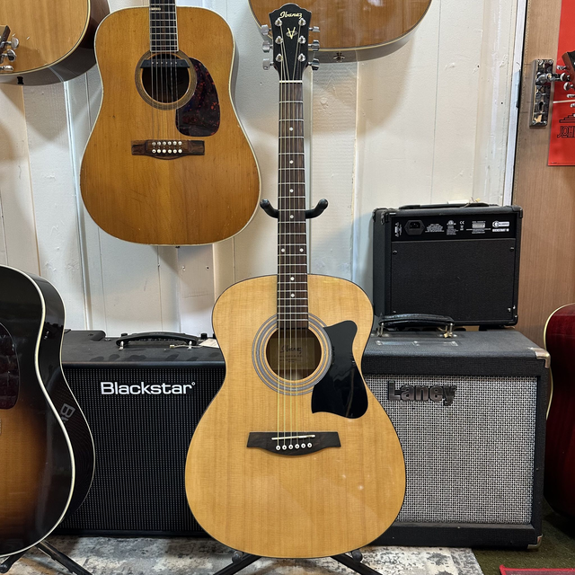 The Ibanez VC50N is a compact, easy-playing acoustic guitar designed for beginners and casual players who want quality and comfort at an accessible price. Its concert-size body offers a warm, focused tone that’s ideal for fingerstyle and light strumming, while the slim neck profile makes it particularly comfortable for newer players. Built with Ibanez’s dependable craftsmanship, the VC50N delivers stable tuning, a smooth feel, and a pleasing, balanced sound—making it a great starter instrument or travel-friendly acoustic.